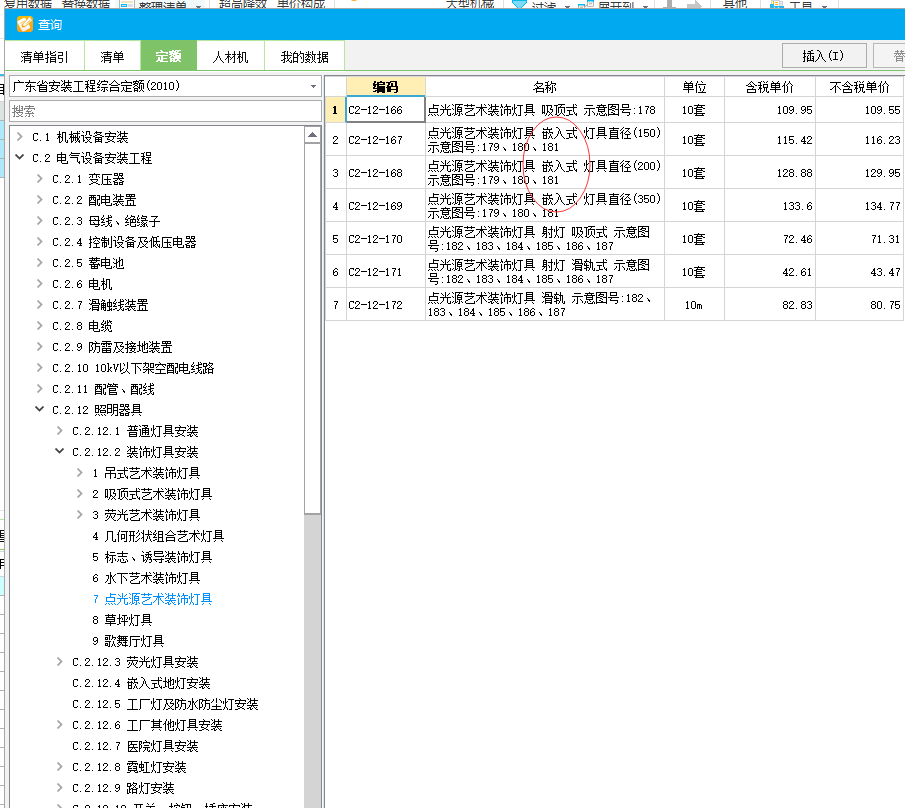 你这应该是LED的筒灯吧,便是挑选嵌入式的,对应它的规矩套价,图片是2010年定额供你参阅。